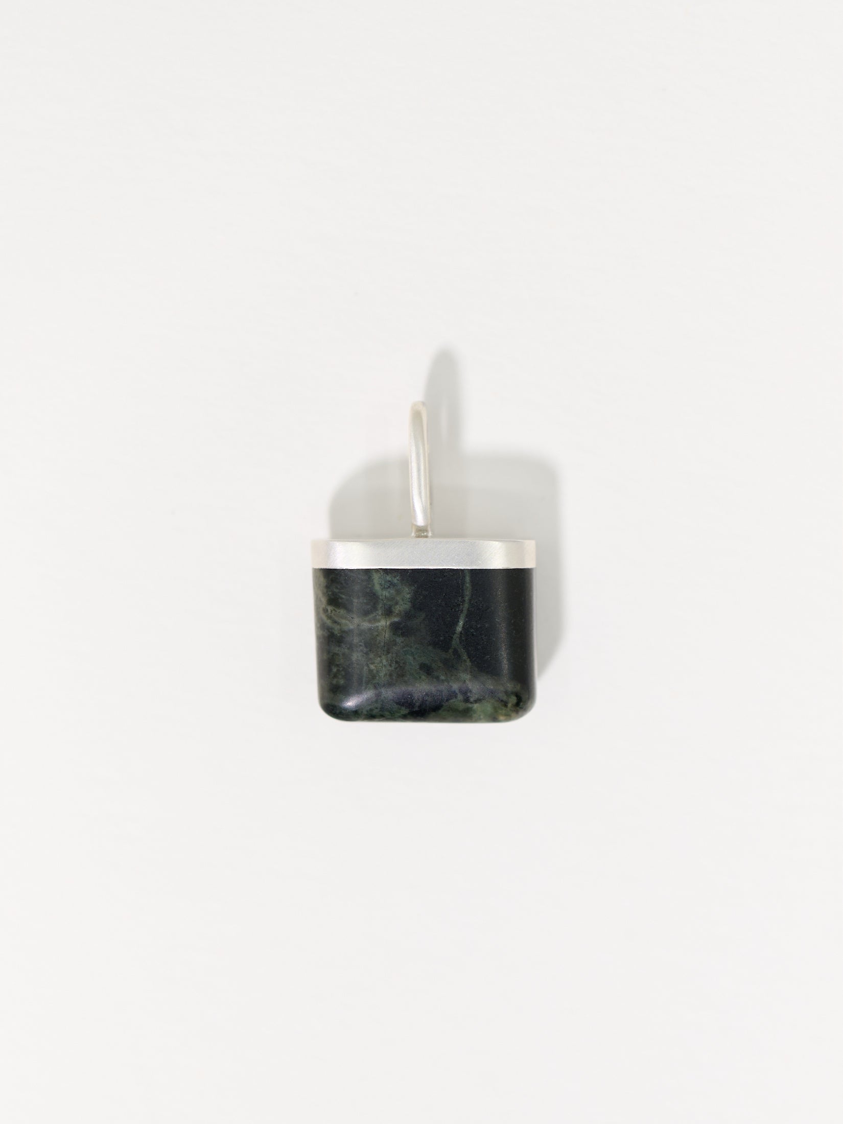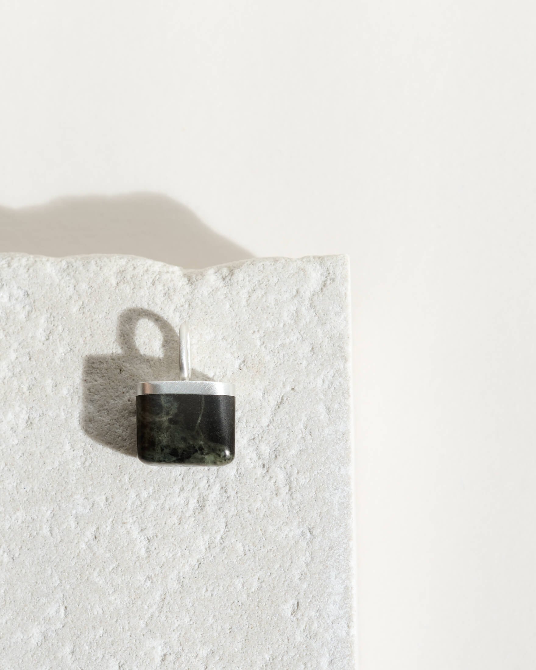 A one-of-a-kind pendant, hand-carved from a rare dark section of Skye Marble and paired with recycled silver. Only a few pendants were made from this unique cut.
