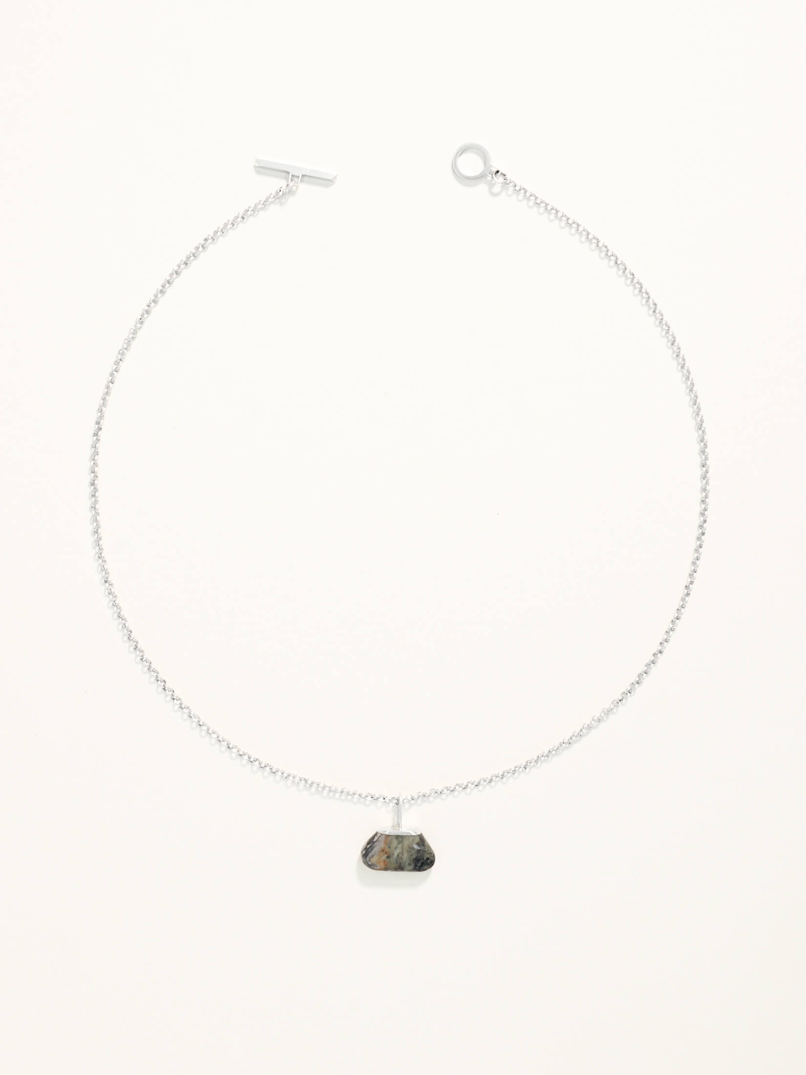 Hand-crafted from rare Skye Marble and paired with recycled silver, the earthy tones of this piece echo the hues of the Skye landscape where it formed millions of years ago. Each section of marble reveals its own unique variations, ensuring your pendant is truly one-of-a-kind.his