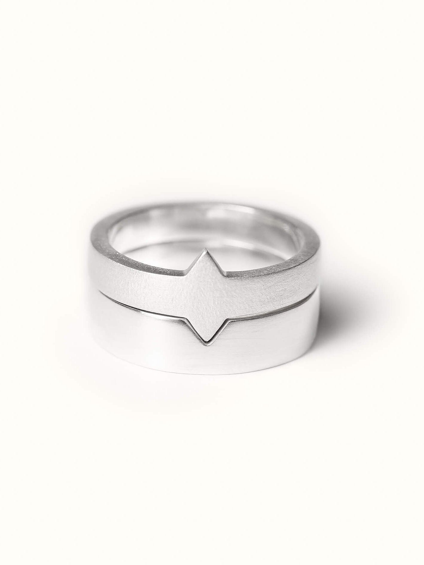 Handcrafted in chunky recycled silver, the Òr rings offer both style and versatility. Wear them solo for a refined look or stack them for a bold statement. The textured Òr Ring Dhà pairs beautifully with the smooth Òr Ring Aon for a striking contrast.