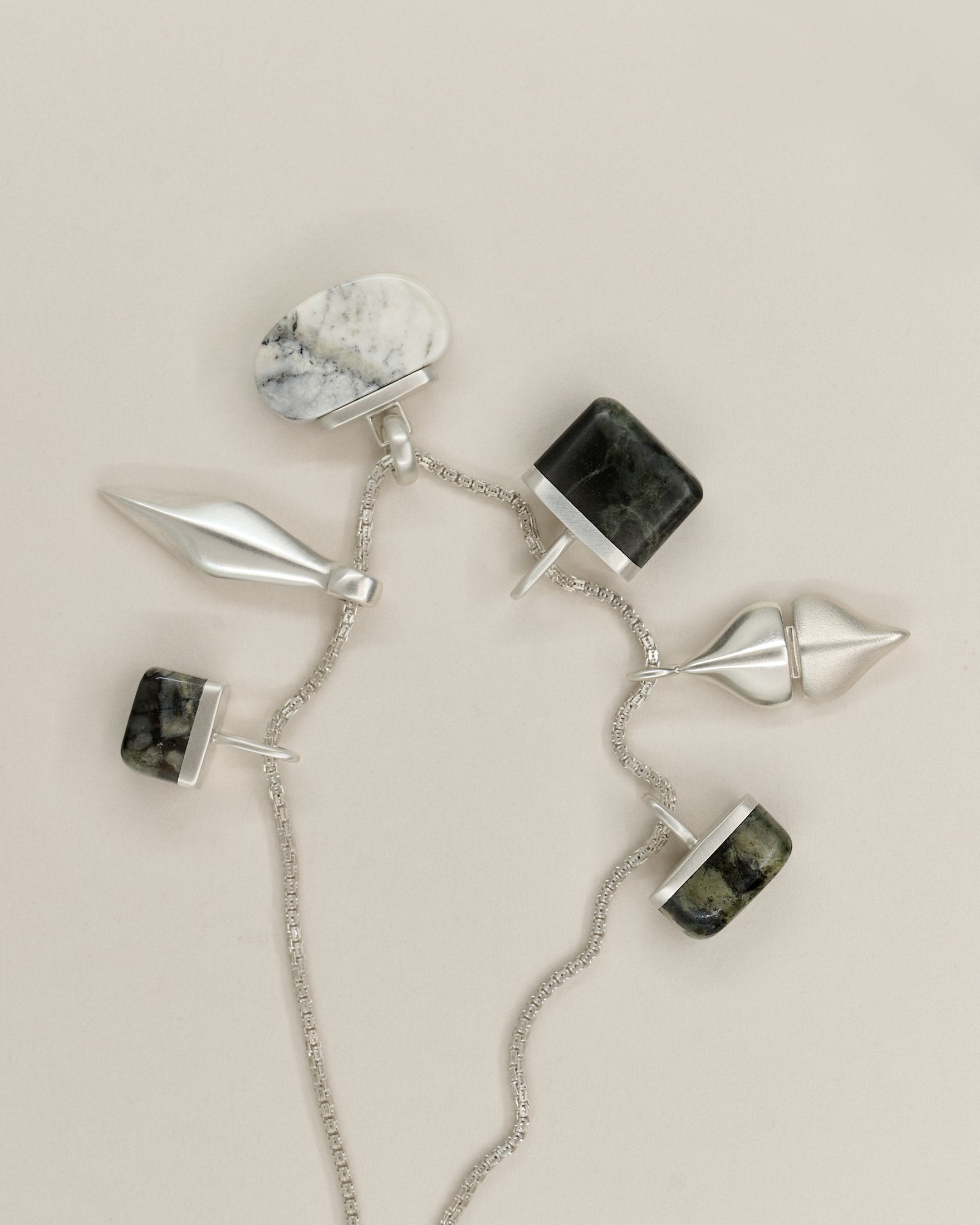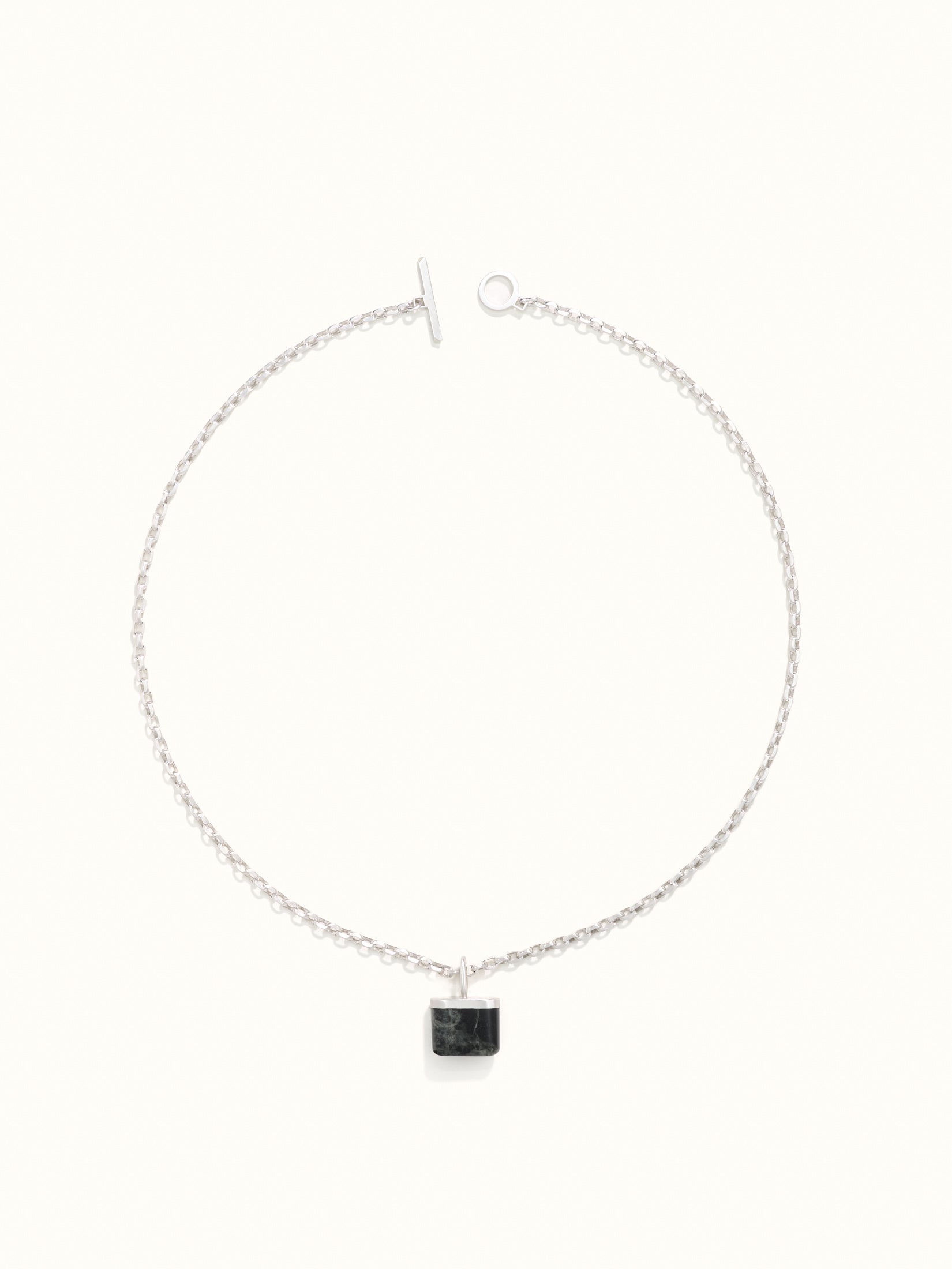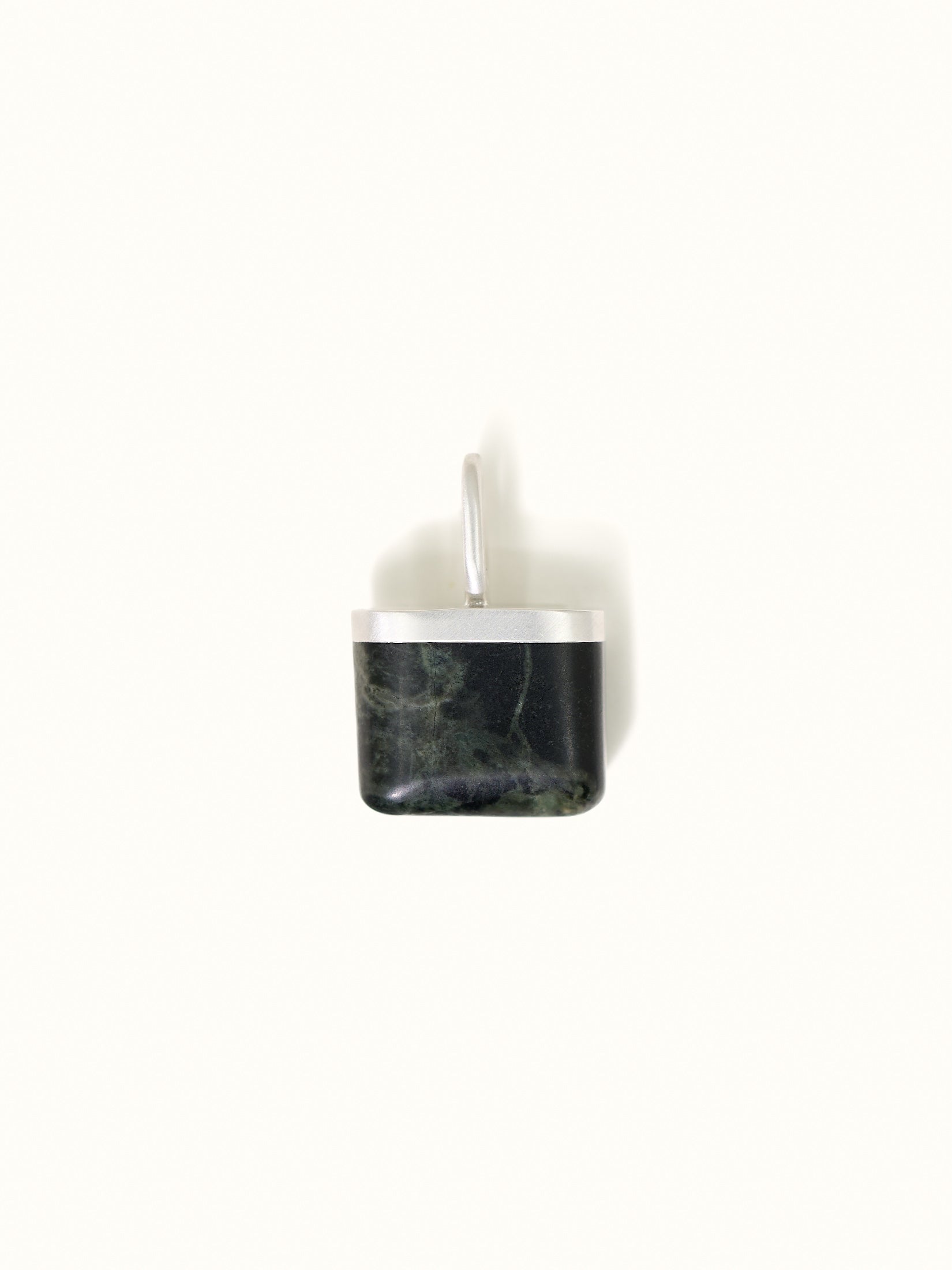 A one-of-a-kind pendant, hand-carved from a rare dark section of Skye Marble and paired with recycled silver. Only a few pendants were made from this unique cut.