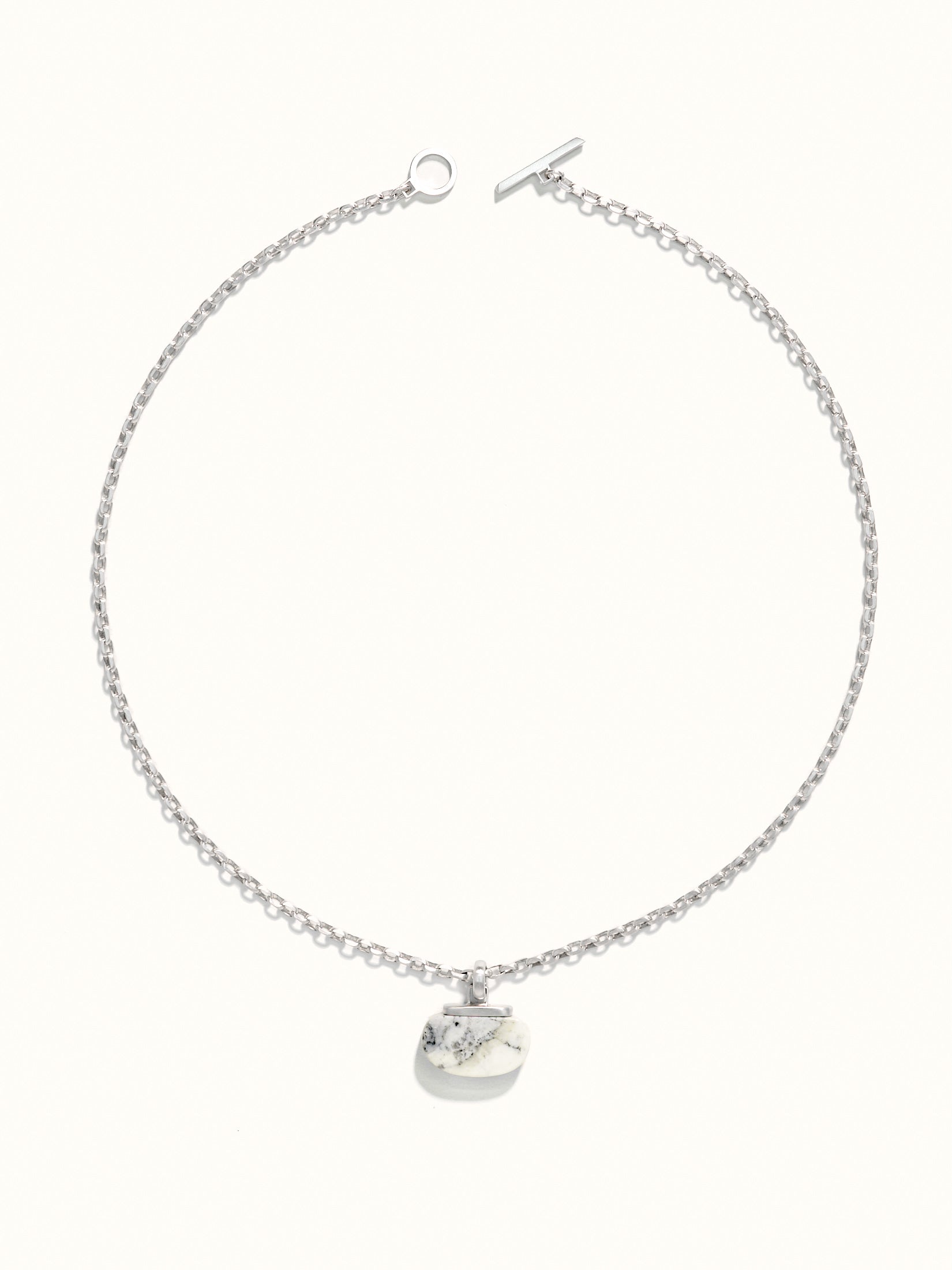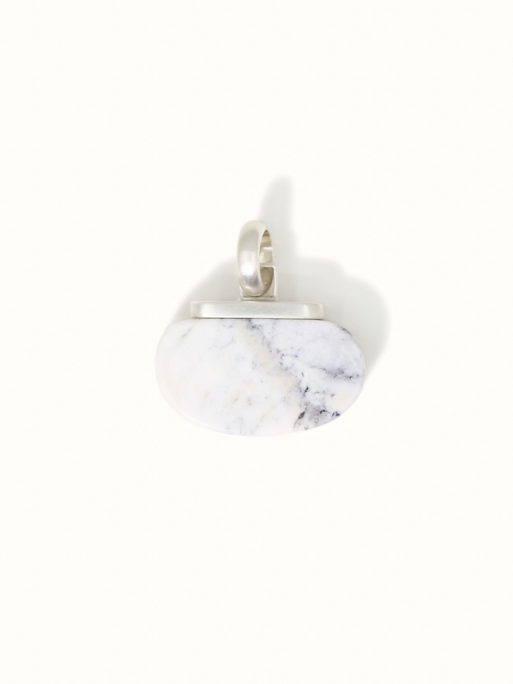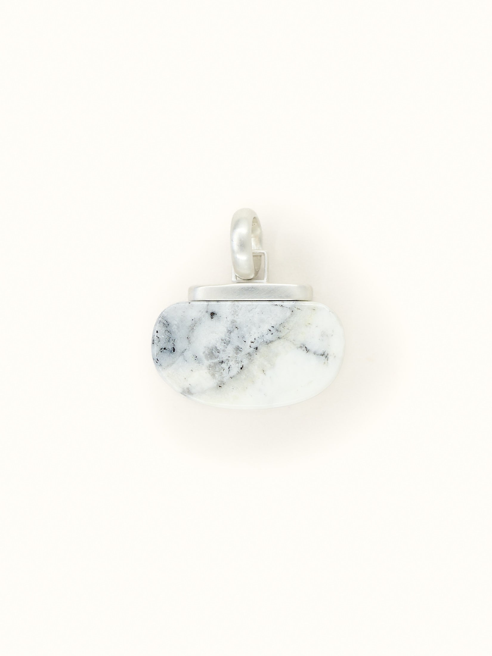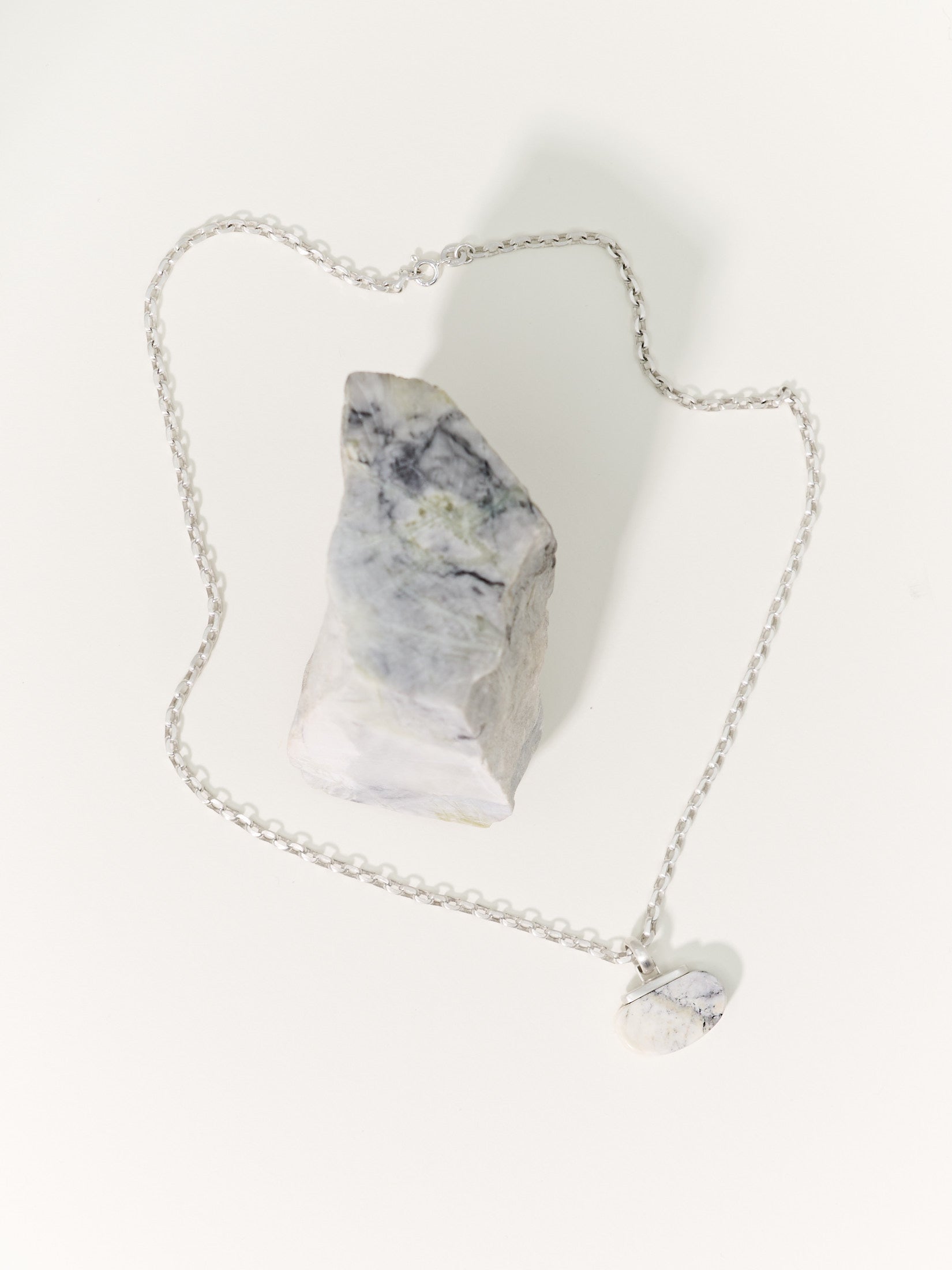 A one-of-a-kind pendant, hand-carved from ancient Skye Marble and paired with recycled silver.