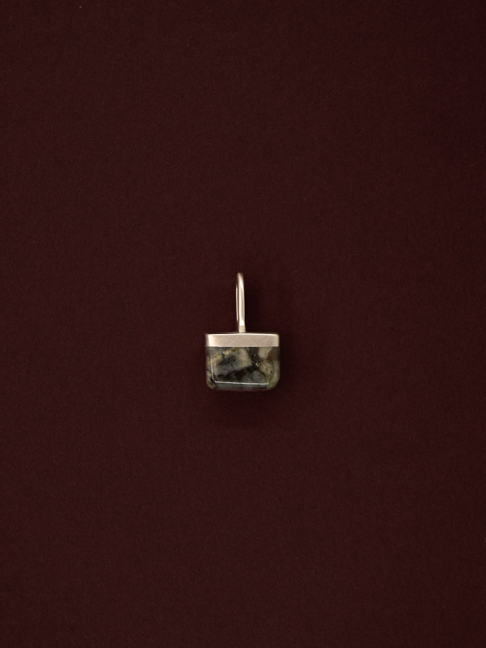 A one-of-a-kind pendant, hand-carved from ancient Skye Marble and paired with recycled silver.